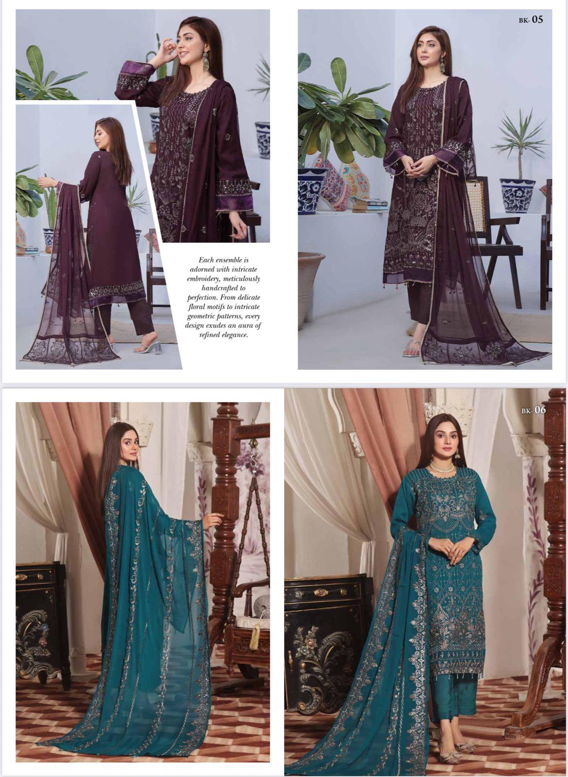 This elegant Pakistani dress features a beautifully designed kameez paired with a matching shalwar and dupatta. Crafted with premium fabric and delicate detailing, it offers both comfort and style—perfect for festive occasions or graceful everyday wear.